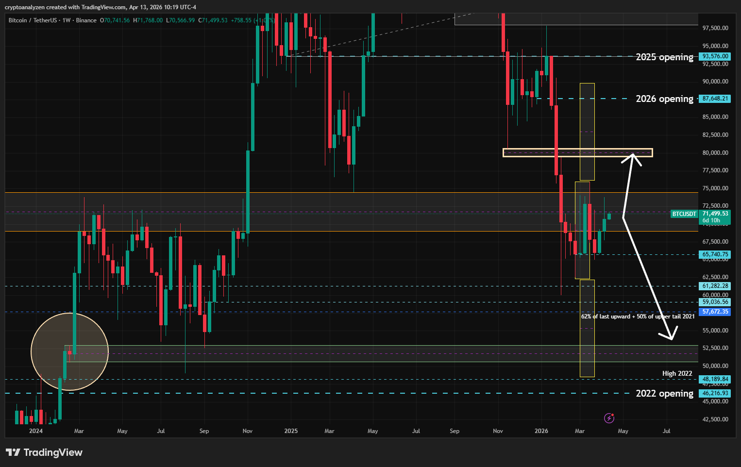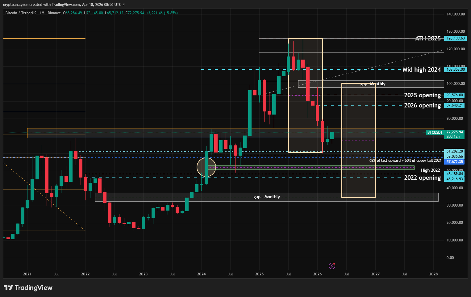 Crypto market research with an emphasis on yearly charts, higher-timeframe structure and index dynamics. Posts include BTC and major altcoin outlooks, yearly candle interpretation and long-term accumulation/distribution zones.
